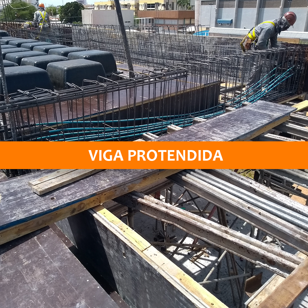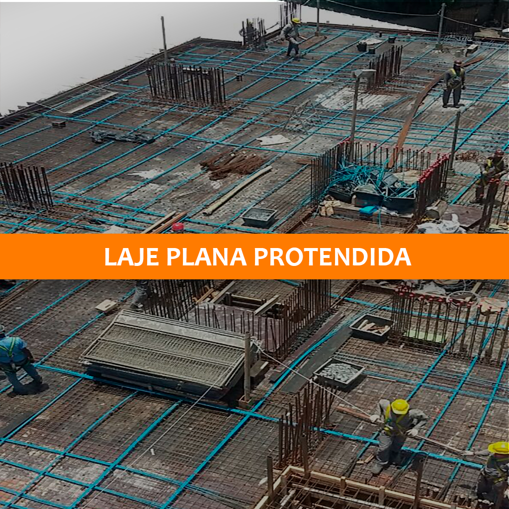 O Concreto Protendido é um tipo de concreto armado mais resistente. Começou a ser desenvolvido no século XVIII, com o intuito de aumentar a resistência do concreto à tração. A sua aplicação permite a construção de elementos com vãos mais extensos do que aqueles obtidos com o uso do concreto armado, possibilitando, ainda, o desenho de elementos estruturais com seções transversais de menor dimensão. Ao se tracionar as cordoalhas, cria-se um carregamento que além de comprimir o concreto – compensando, depois, parte da tração que o concreto experimenta quando carregado, aumentando consideravelmente a sua resistência à mesma – também gera esforços contrários aos carregamentos permanentes, ou seja, de baixo para cima, e assim uma resultante de cargas até 80% menor. Na protensão não-aderente, cada cordoalha é acondicionada dentro de bainhas plásticas, recebendo uma cobertura de graxa especial, sendo, assim, é possível tensionar cada cordoalha independentemente. A tensão é aplicada só após o concreto ter atingido grande parte de sua resistência total, através do uso de macacos hidráulicos, que tracionam as cordoalhas, sendo estas, fixadas nas extremidades da estrutura, através das placas de ancoragens. |